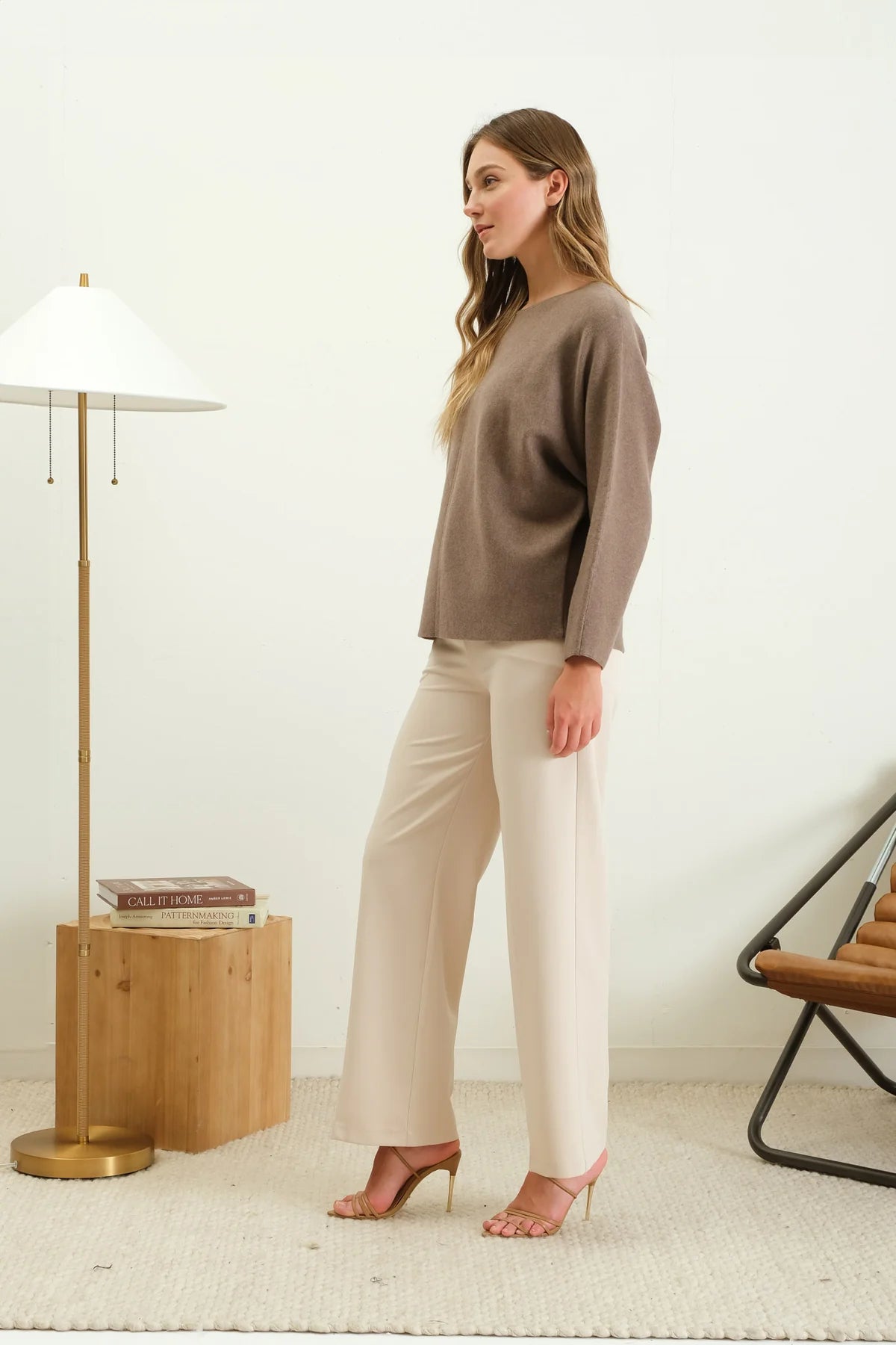 BOAT NECKLINE LONG SLEEVES SOLID PULLOVER KNIT SWEATER SWEATSHIRT