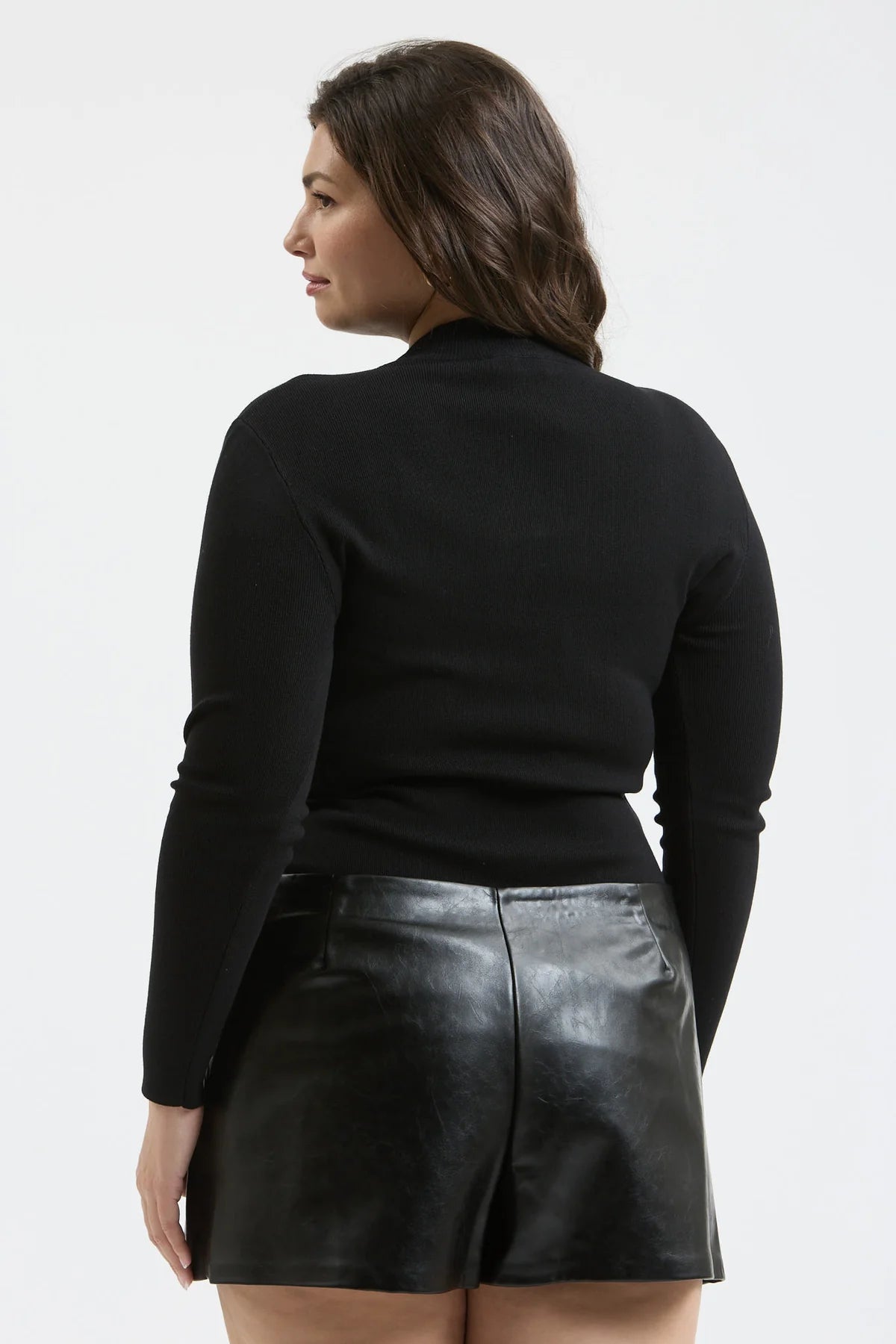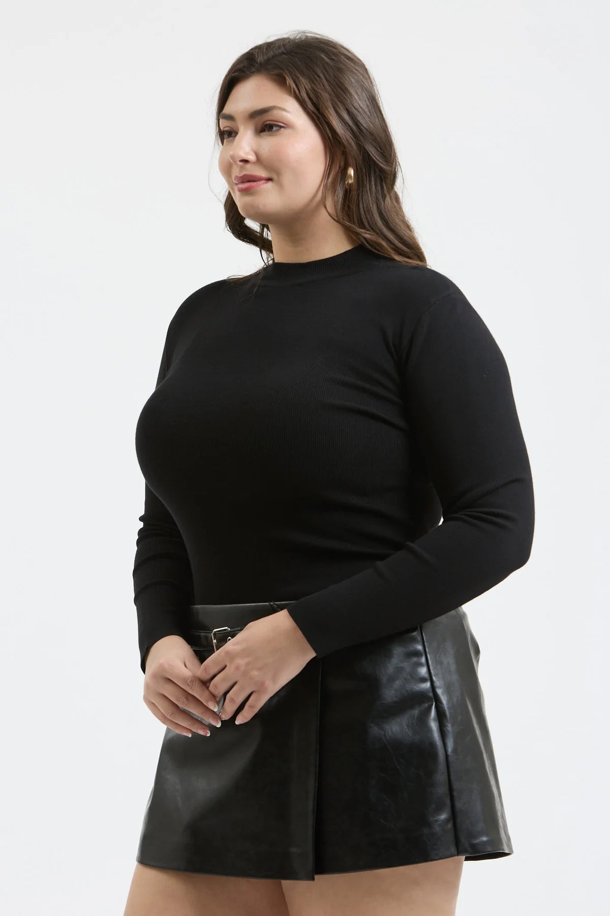 Mock Neckline Long Sleeve Fitted Sweater Black